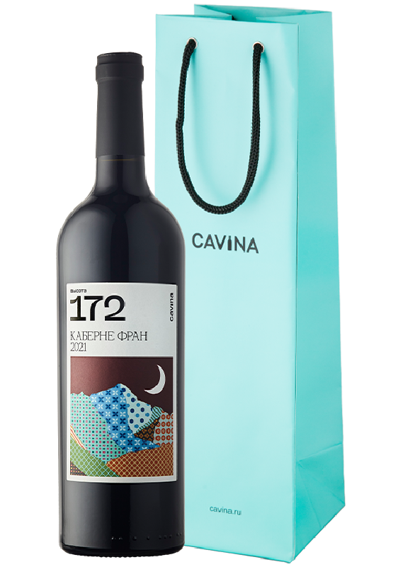 Вино сухое красное ВЫСОТА 172 КАБЕРНЕ ФРАН 2021 0,75 л, в бирюзовом подарочном пакете Тиффани